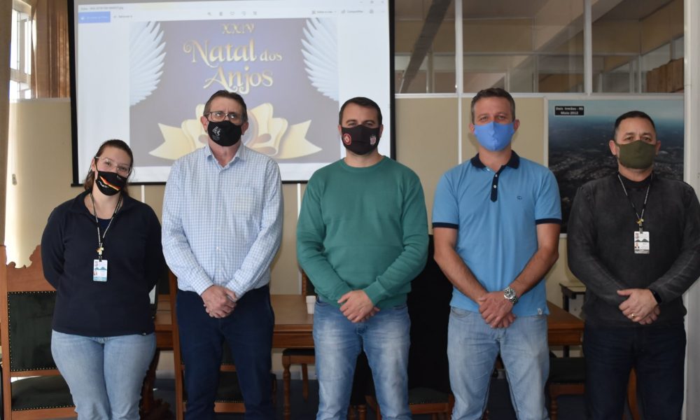 Dois Irmãos – Dois vereadores da cidade de Teutônia estiveram em Dois Irmãos para buscar referências do Natal dos Anjos, considerado um dos maiores eventos natalinos do Rio Grande do Sul. O prefeito, Jerri Meneghetti, o secretário municipal de Desenvolvimento Econômico, Edson Luis Maicá Severo, e a chefe do Departamento de Turismo, Larissa Mentz, receberam os vereadores Diego Tenn Pass e Vitor Krabbe, na tarde de quinta-feira (27).