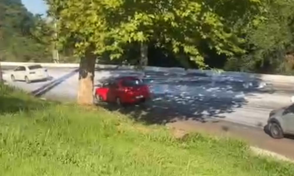 VÍDEO: caminhão derruba tinta na BR-116 e causa transtornos; veja como está a situação